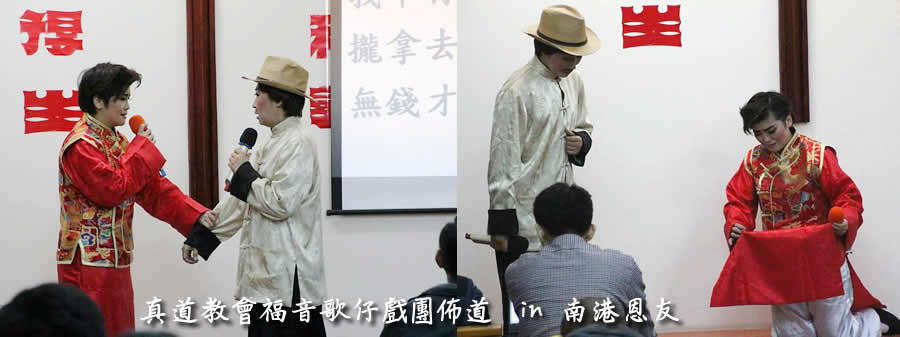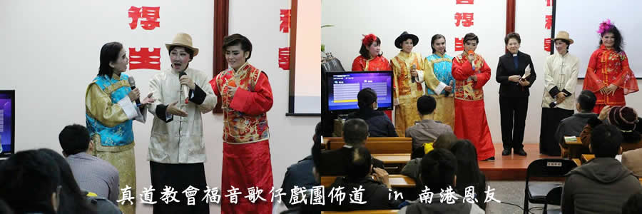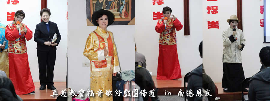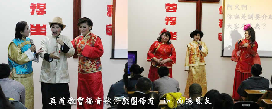 南港恩友中心主日敬拜由仁福弟兄領會敬拜讚美,並由真道教會福音歌仔戲團佈道: