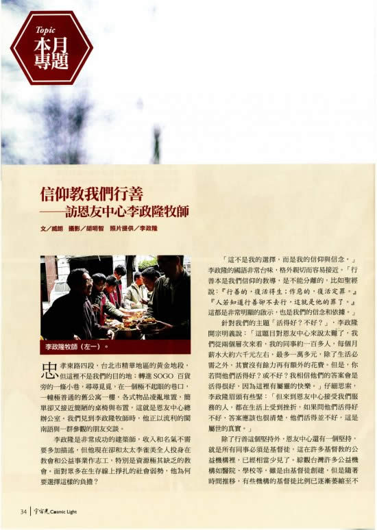 信仰教我們行善 ── 訪恩友中心李政隆牧師宇宙光雜誌 477期(2014年1月15日 )