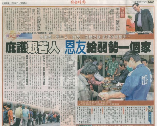 不論是待業者、更生人、街友,甚至是賃居在外、付不起房租的大學生,只要遇到生命中的困難、或是沒錢吃飯,恩友中心都會張開雙手,讓求助者得到庇護和溫飽,首間基督教恩友中心自九年前成立以來,在上帝的指引和民間資源協助下,現在已經擴充到全國廿一處恩友中心,有一百五十多個棲身之處,隨時照顧需要遮風擋雨的人。