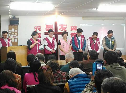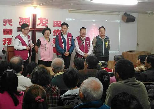 林佳龍與現場民眾先一起禱告,接著與市議員邱素貞、社會局長呂建德、南區區長鍾正光一起發放保暖夾克,發完150多人的夾克,已經是晚餐時間,林佳龍也幫忙盛飯添菜,讓所有人飽餐一頓。