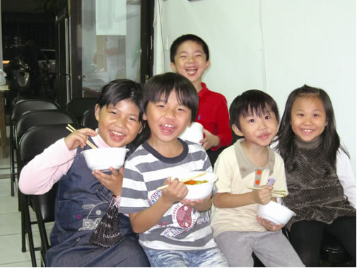 如今豐原教會,來了幾位小朋友來聽講 神的教誨,並一起與會眾共享餐飲,感謝 神的作為!