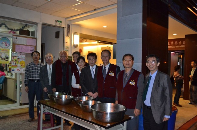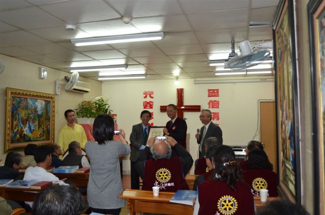 (三)大力扶持恩友中心的台北市忠誠扶輪社和台北市牙醫師公會,在該會劉秘書安排下, 11月 13日由李文森社長和也是牙醫師公會代表王人豪,岳永文、梁敦第和翁莉莉夫婦、林東煒、李金濤、陳健如、李永然夫人黃淑嬪等社友到南港和北恩兩地參訪,參訪當中由李執牧和候長老接待,除了簡單報告恩友事工,也安排兩位弟兄見證,利用北恩供餐前互贈禮物和感謝狀,聚會完後供餐,忠誠扶輪社社友更全程參與分派食物等供餐事宜,親自感受將食物分給需要人的喜悅,對於忠誠扶輪社及牙醫師公會長期愛心奉獻、贊助支持恩友事工,願 主大大賜福紀念他們愛心擺上。
