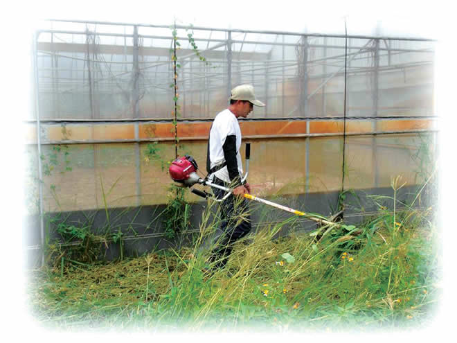 站在國華身旁看他除草,斗大的汗珠串成珠串不住滴在禾場的土上,我笑說曬得好黑,他大笑著,他說從他出生皮膚就沒有白過,然後恢復沉默,只有除草機的聲響隆隆迴盪。他的表情帶著微笑。