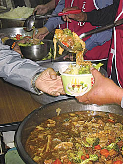 尤其是一道絲瓜湯麵,僅僅加幾片肉片,一些蝦米,煮兩大桶大家依然吃得精光。(煮菜瓜麵是因為沒有菜不得已,卻成了台南恩友的招牌)。