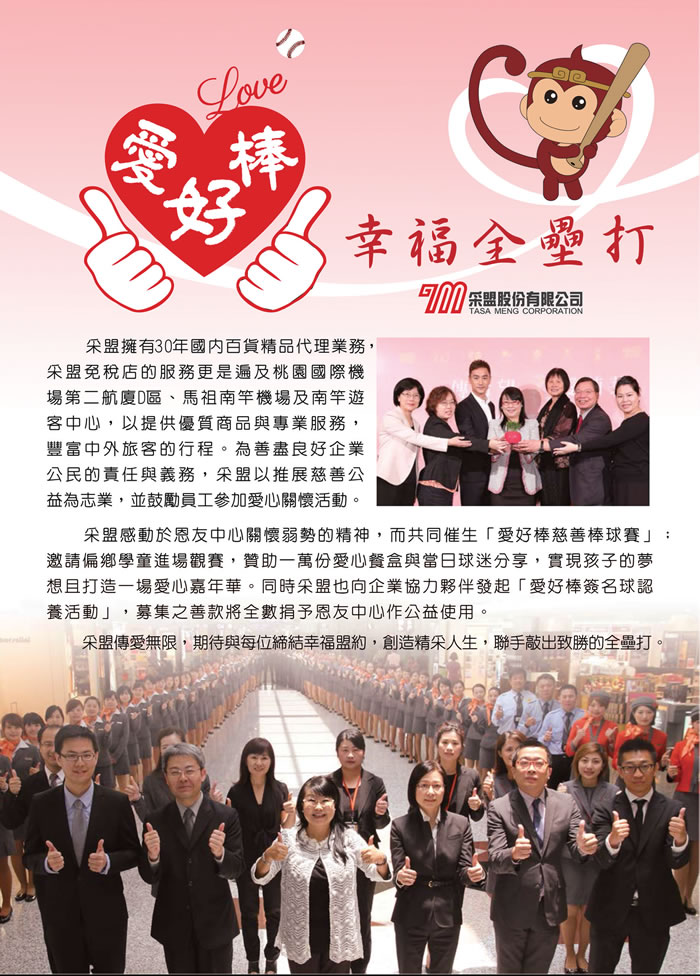 恩友月刊 2014年 8月號   感謝恩友愛心協會對弱勢偏鄉孩子的關懷,邀請400 位孩子、老師和志工到台北天母看職棒比賽, 真是恩典的朋友!