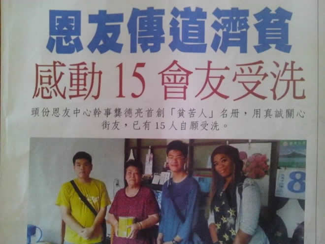 2003 年成立的基督教恩友中心,以福音為主從事行善救濟,至今分佈在台灣各城市。