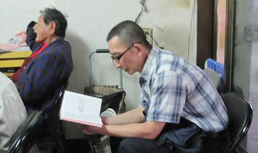 他是小張,來到恩友中心用餐已經快3個月了。 他跟別的用餐兄姊不一樣的,是他自己在做紀錄,每吃10餐,他都奉獻500元給台南恩友。