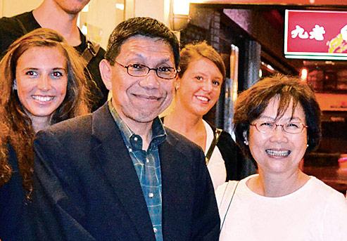 中秋辦桌那天他來到台南恩友,身旁挽著他的手臂的是他女兒。