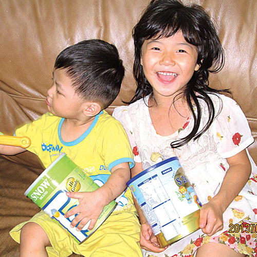 中午將剛拿到由各界善心人士捐贈的奶粉送過去,才知道奶粉已經吃完一星期了!老實的阿保伯卻說:「沒關係啦!窮人家小孩喝稀飯一樣可以長大啊。」