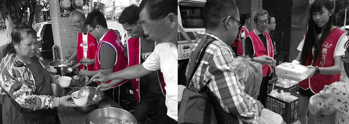 她每天下班後都來用餐。總帶著一個便當,有時候是滷雞腿,有時候是炸排骨。後來才知道,她總寧願自己來排隊吃飯,省下錢買豐盛的便當帶回家給唯一的女兒吃,捨不得多買一個…她,是個單親媽媽…在這裡,我們再次看見媽媽的愛!我們在街角遇見愛!