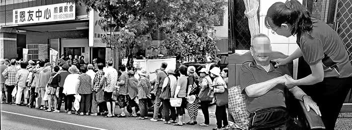 「請問這裏有在發米嗎?」老人虛弱地開口詢問…