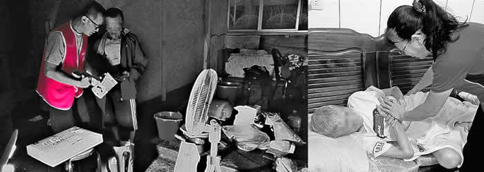 原來鄭伯伯已70歲,身上有久未沖洗的體味。鄭伯伯目前住在親人留下的房舍,整間屋子散發著一股強烈的味道…