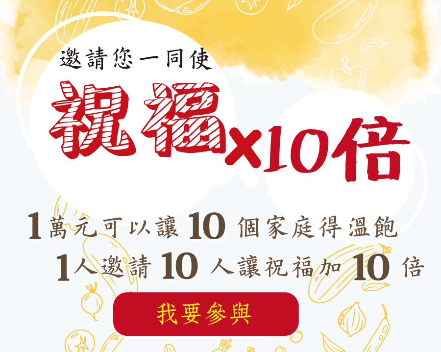 邀請您加入祝福的行列,您的愛心捐款,將成為貧困弱勢家庭手中的一份份【祝福物資包】(每份包含白米、麵條、奶粉、麥片、醬油、罐頭...等)。