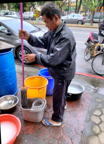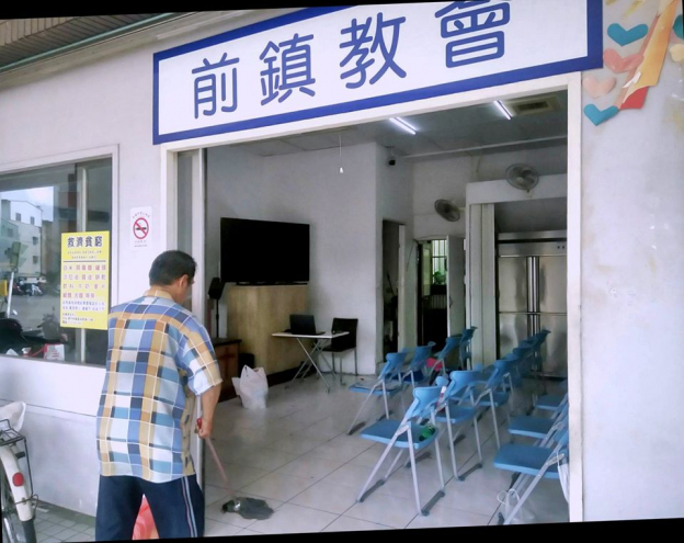 吉成到教會已快兩年了,去年受洗成為基督徒;對面的公園是他的「床」,教會是他的「家」。因為四年前中風,致行動有些不便,記憶有些喪失,但他每天總是竭盡自己所能地幫大家把地板拖洗得乾乾淨淨。
