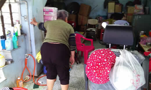 進了阿美姐的家,發現阿美姐所有打點都在一樓車庫內完成,包括洗冷水澡、洗衣服、晚上煮的粥。
