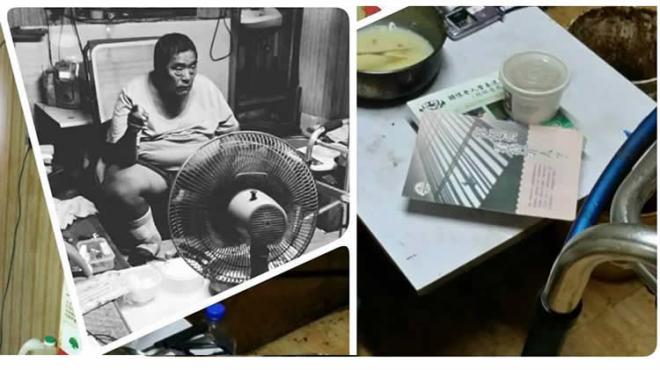 他們這幾天去外地上工了,買了一箱雞蛋跟一些泡麵留給他,他站不起來去煮麵,只好用熱水泡蛋喝。